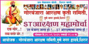 आरक्षण कृती समिती व नायक, कारभारी यांनी सांगितले की, “हैदराबादखालील काळात बंजारा समाजाला अनुसूचित जमातीचा दर्जा मान्य होता. मात्र, महाराष्ट्र स्थापनेनंतर झालेल्या अन्यायामुळे समाजाला एस.टी. प्रवर्गातून वगळण्यात आले. या अन्यायग्रस्त समाजाला न्याय मिळावा, हाच आमचा लढा आहे. यावेळी लाखोंच्या संख्येने समाजबांधवांनी शिरूर तहसीलवर मोर्चा काढून आपली ताकद दाखवावी.”